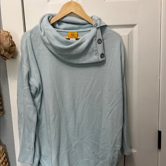 Ruby Rd. Light Blue Button Cowl Neck Sweater