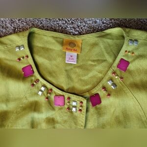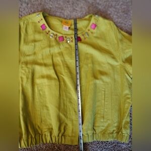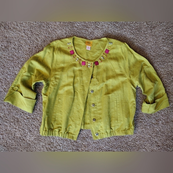 Ruby Rd. Blazer Jacket, size 12. Brighten up your wardrobe with this stylish lime green jacket. Featuring colorful embellishments, it's perfect for adding a pop of color to any outfit. measurements included in photo, all questions welcome!