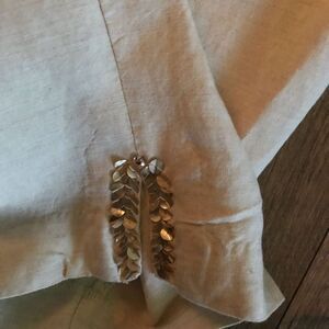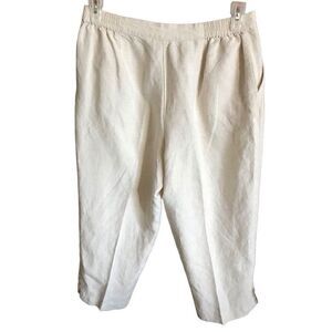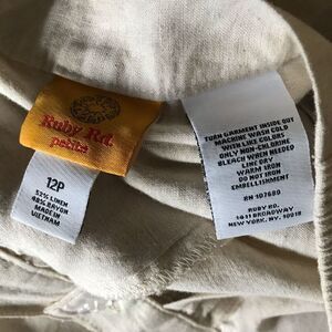 Ruby Rd. Linen blend khaki Capri cropped SZ 12 Petite straight leg sequin trim at bottom side of leg - rayon linen blend