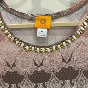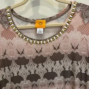 Ruby Rd Long Sleeve Top with Decorative White & Gold Front Neck Edge