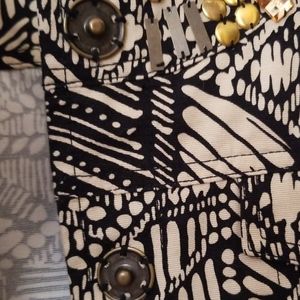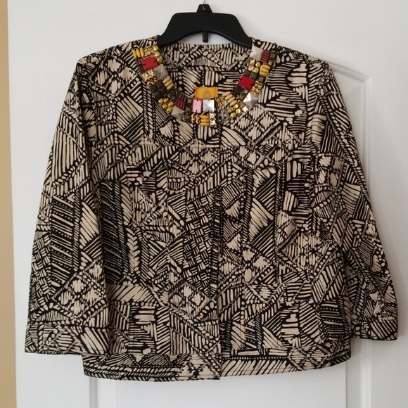 Beautifully embellished neckline, brass snap closure, pretty geometric pattern. Cotton. Not lined. In beautiful shape, barely worn.