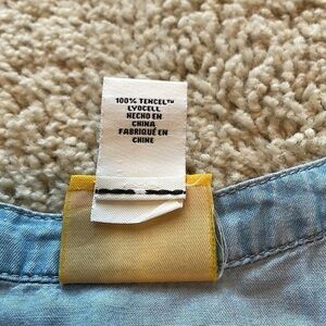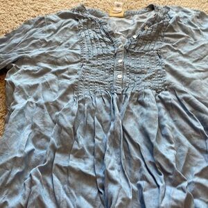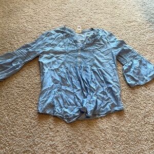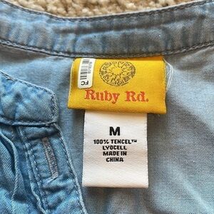 Ruby Rd M denim look top with top buttons and bell sleeves