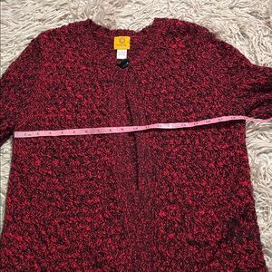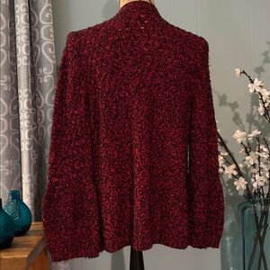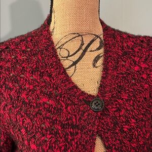 Ruby Rd Marled One Button-Front Bell Sleeve Cardigan. Red and black marled open stitch fabric. One button front. Bell sleeves. Great condition. Size medium.