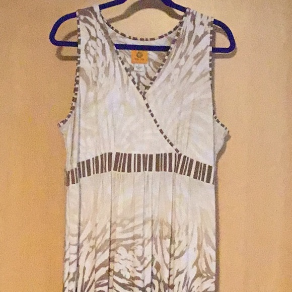 Floor length, tank sleeve maxi dress. 96% poly 4% spandex
