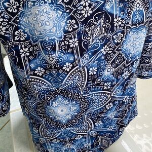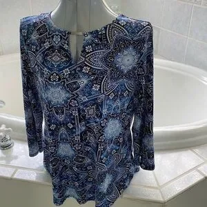 Ruby Rd. Bandanna motif, blue and white easy care blouse size medium, comfortable to wear and no visible signs of wear. A favorite in my wardrobe, but does not fit me anymore.