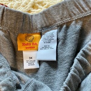 Comfortable Ruby Rd. sweatpants in solid gray. Elastic waistband with drawstring for adjustable fit. Soft, lightweight knit for everyday wear. Straight relaxed legs for easy movement. Simple versatile style pairs with tees or hoodies.
