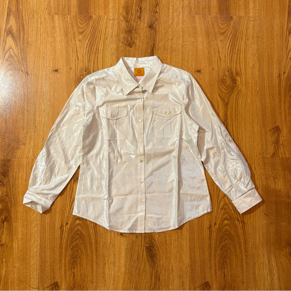 RUBY RD White metallic button-up shirt #y2kfashion #festivalvibes