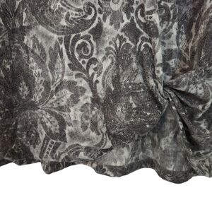 Size: XL In front, it is drawn up on one side. The back is a few inches longer than the front. Elegant from office to evening. Shimmers metallic, various shades of silver and gray.