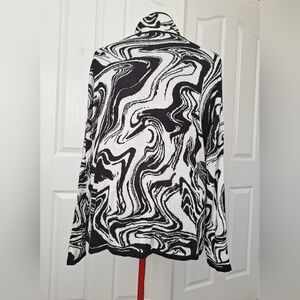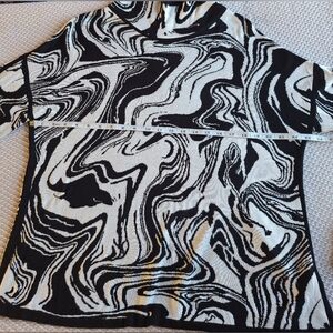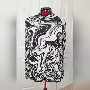 Chic top with a striking black and white abstract design. Ideal for versatile styling.