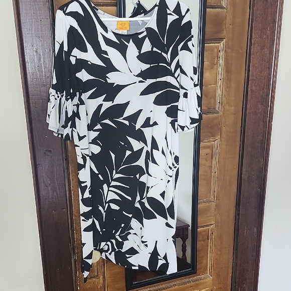 Ruby Rd. Monochrome Leaf Pattern Dress