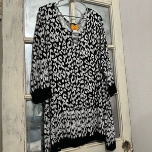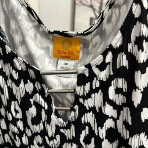 Chic Ruby Rd. top with striking black and white pattern. Perfect for a bold look.