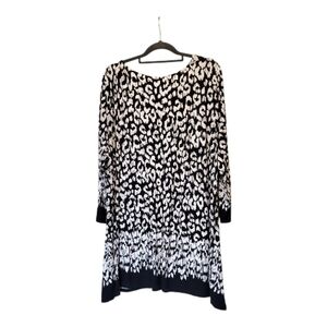 Chic monochrome tunic with bold patterns. Features unique silver neckline detail. This beauty is a size 2X, stretchy fabric, super comfy. From a smoke free home.