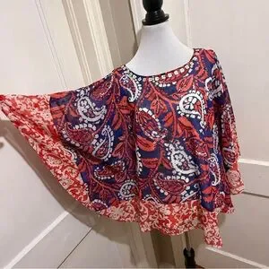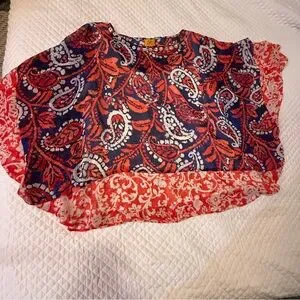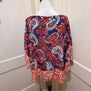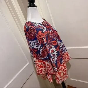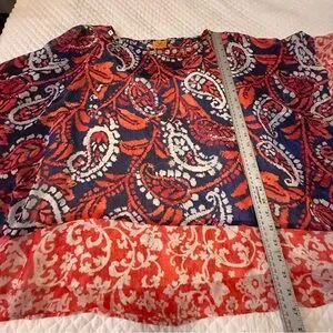 No flaws, full tank top underneath. Cute! Stylish top with abstract pattern. Features red, blue, and white hues. Perfect for any occasion. Bundle any two items in my closet and I will give you free shipping!