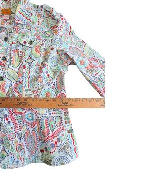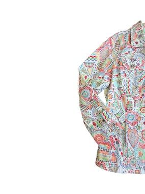 #RubyRd #ButtonDownShirt #ColorfulTop #ArtisticPrint #WomenStyle #Size14 #RamieCottonBlend #BohoStyle #StatementTop #CasualChic #PoshFinds