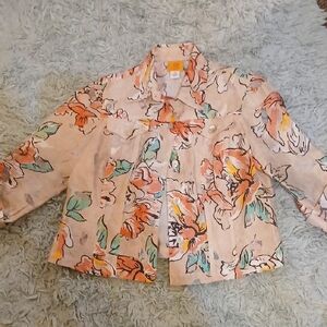 Chic jacket with a floral pattern. Features a blend of soft hues.