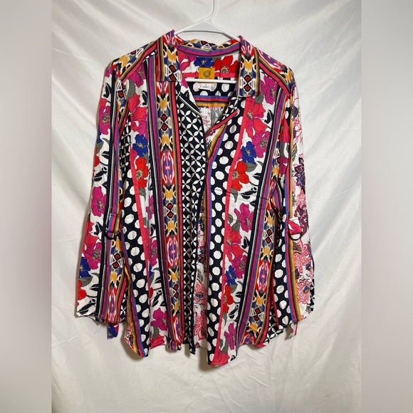 Ruby Rd. Multicolor Floral and Geometric Button Down Shirt