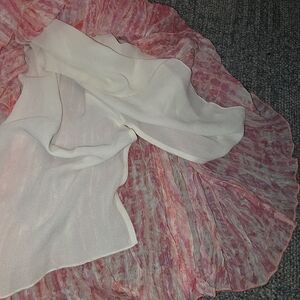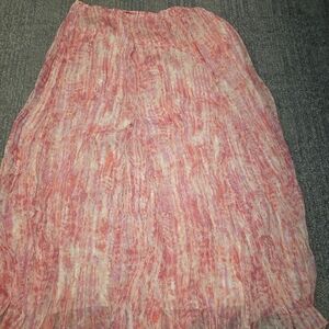 Elegant maxi skirt with a blend of pink and white hues. Lightweight and flowy. Ideal for casual outings.