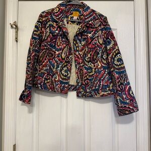 Bold paisley design with vibrant colors. Stylish and eye-catching. Ideal for a standout look. All buttons accounted for. Excellent condition. Smoke free home.