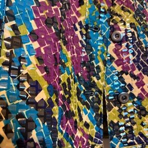 Vibrant blazer with a striking multicolor design. Features a mix of blue, green, and purple hues. Perfect for a bold statement.