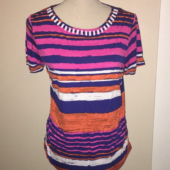 Ruby Rd Multicolor Striped Short Sleeve Top
