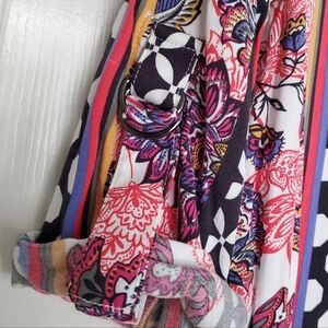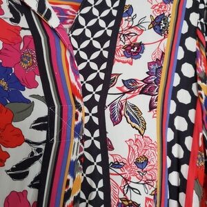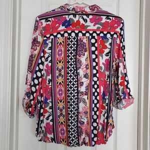 Ruby Rd. Multicolor Top Floral Stripes Polka Dots Bright Funky Blouse Sz:MP