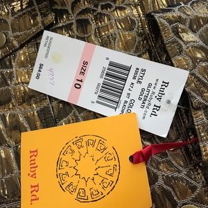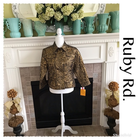 NWT metallic gold color jacket, size 10. 3/4 sleeves. This is a really sharp looking jacket !! And Ruby Rd. makes good quality items! My measurements are done flat and are approx. thanks for looking!๐