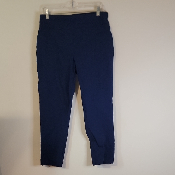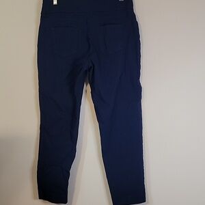 Deep navy straight-leg pants with a clean waistband. Smooth fabric and classic tailoring. Easy to style for many looks.