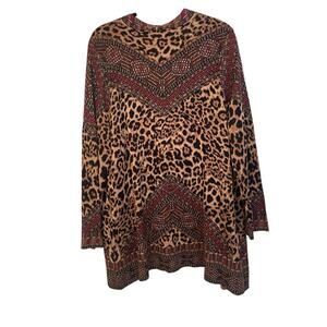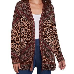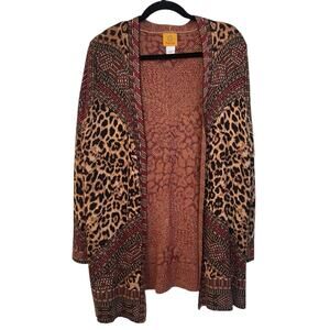 Ruby Rd. Open Front Animal Print Cardigan Sweater Large