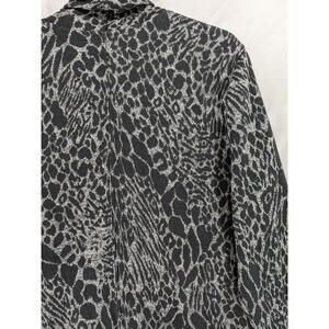 Ruby Rd Open Front Cardigan L Black White Waterfall Draped Animal Print Flowy