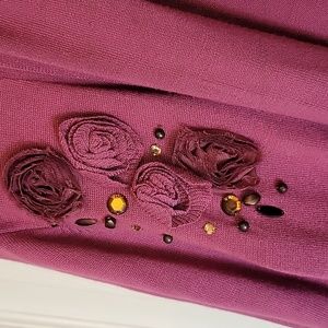 Ruby Rd. Open Front Cardigan Large Flowers Purple