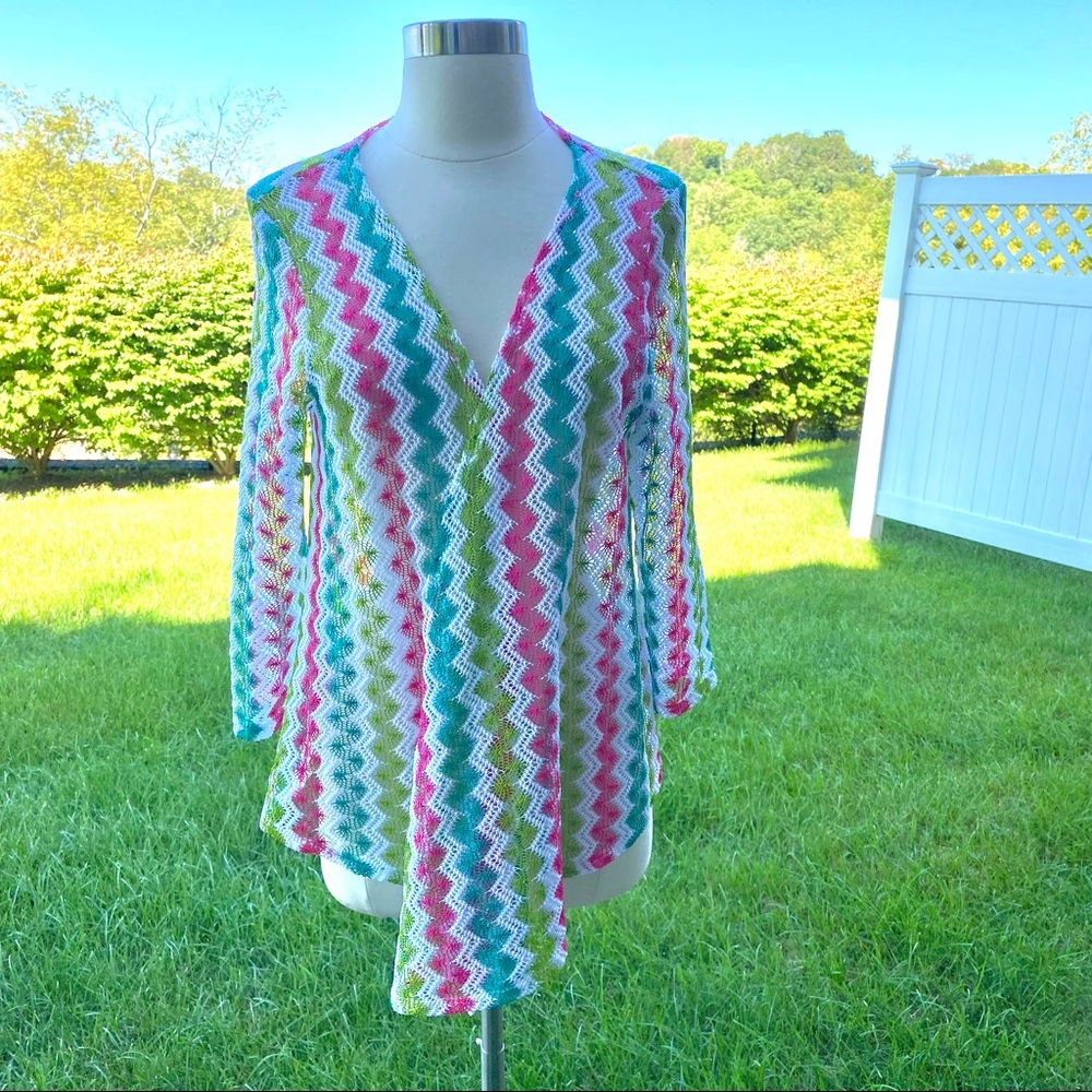 Ruby Rd. Open Front Knit Colorful Cardigan