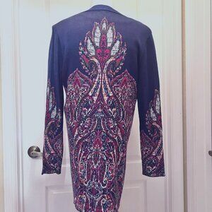 Ruby Rd. Open Front Long Sleeve Cardigan-Blue/Pink Mix-Size Medium-Casual-Long