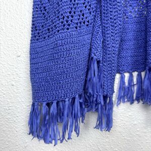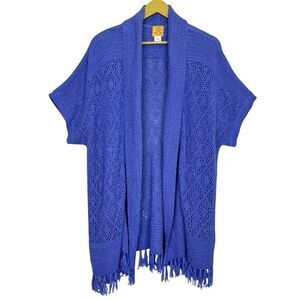 Ruby Rd Open Knit Crochet Cardigan Size 3X Open Kimono Fringe Boho Hippie Beachy
