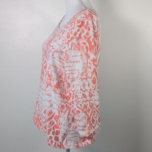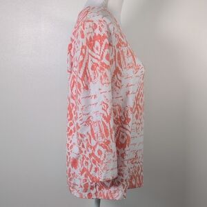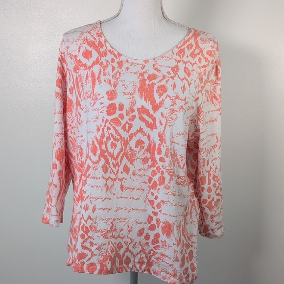 Experience the vibrant charm of the Ruby Rd. Orange 3/4 Sleeve Tee, designed to add a pop of color to your wardrobe. This top combines comfort with style with a stretchy fit. in very good condition