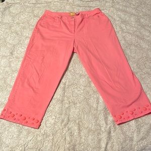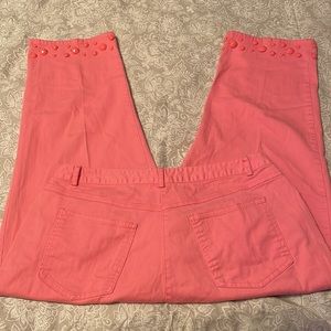 Super cute pink denim jeans with jewel embellishments on leg bottoms by Ruby Rd. Size 12