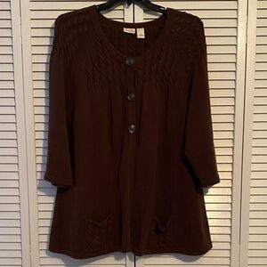 Ruby Rd. Brown Pants, Front zip, belt loops, elastic side waist, front and back pockets, 98% cotton 2% spandex, size 18W