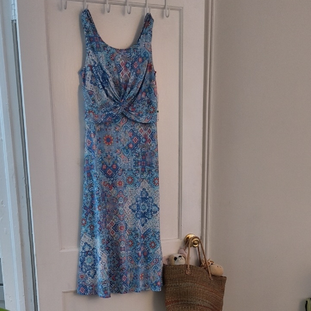 This sleeveless dress is perfect for any occasion. The intricate design is enhanced by the twisted detailing. Midi A-line cut. NWT.