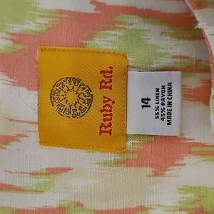 Ruby Rd Peach & Green Lightweight Linen Blend Jacket size 14.