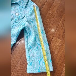 Super cute light weight jacket/blazer with crochet designed leafy pattern all over, front button pockets, and button closure. Ruby Rd Size 10 Petite