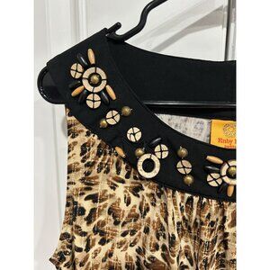 Ruby Rd. Petite Sleeveless Animal Print Top Embellished Black Collar Sz PXL