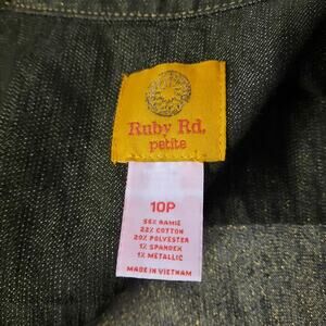 Ruby Rd Petite Womens Beaded Denim Jacket 10P Green Zip Embellished Boho Western