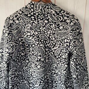 Ruby Rd Petite Women’s PS Open Front Cardigan Sweater, Black/White, Long Sleeve, 2 Front Pockets, EUC