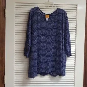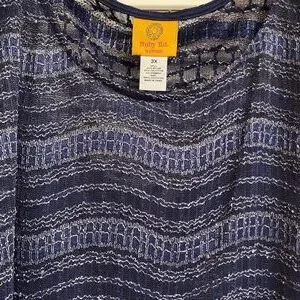 Ruby Rd sheer top. Navy with silver threads with attached navy camisole underneath. 3/4 sleeves.