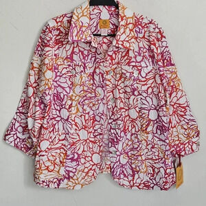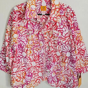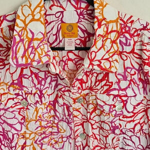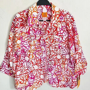 Collar with Button 3/4 sleeves. White red and orange in color.