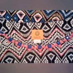 Ruby Rd. print top, scoop neck with decorative trim, long sleeved, size L, scarf hem, 95% rayon, 5% spandex, 22" armpit to armpit, 27" length