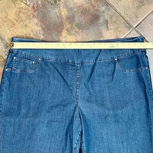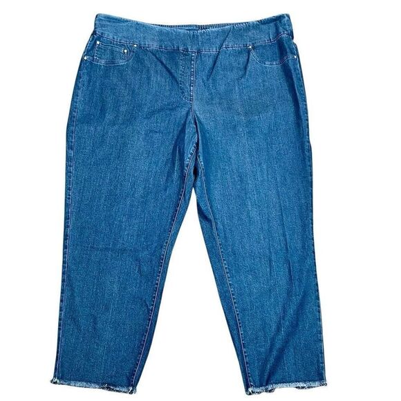 Ruby Rd. Pull-on Straight Denim Fringe Bottom Jeans 3X. Measurements in photos. In good, pre-loved (used) condition.