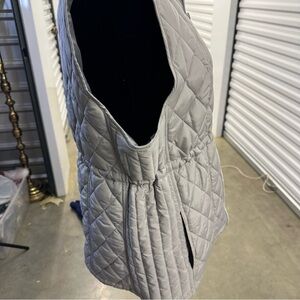 Elegant quilted pattern. Versatile gray shade. Perfect for layering.
