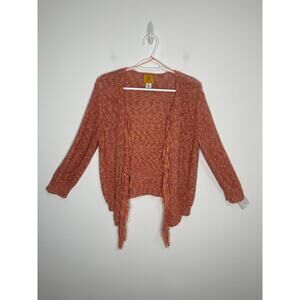 Ruby Rd. Rd women's medium knit cardigan sweater orange loose weave fringe