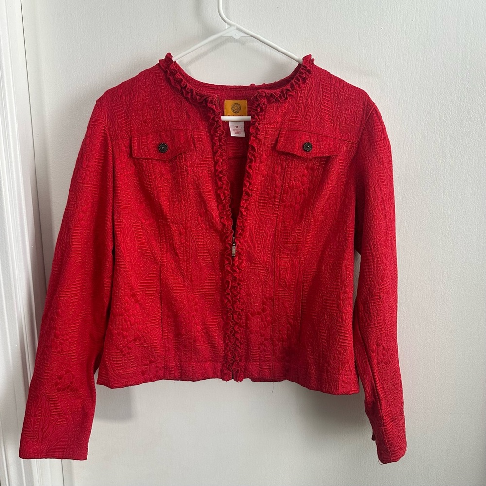 Ruby Rd Red Textured Ruffle Zip Jacket | Size 10 | Y2K Boho