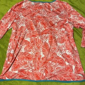 Ruby Rd. Red White and Blue Sz Large Woman's Top Leaf Print